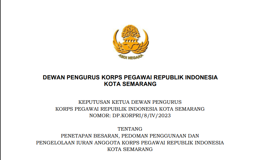 Penetapan Iuran Anggota KORPRI Kota Semarang